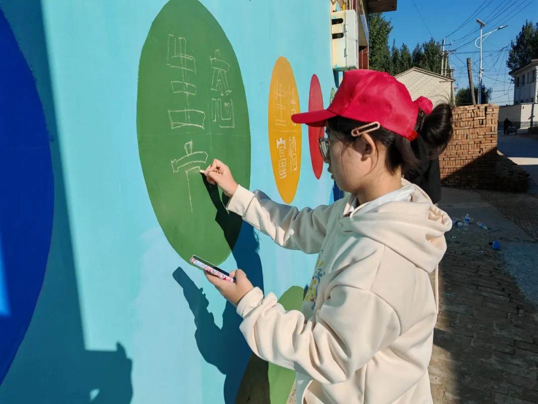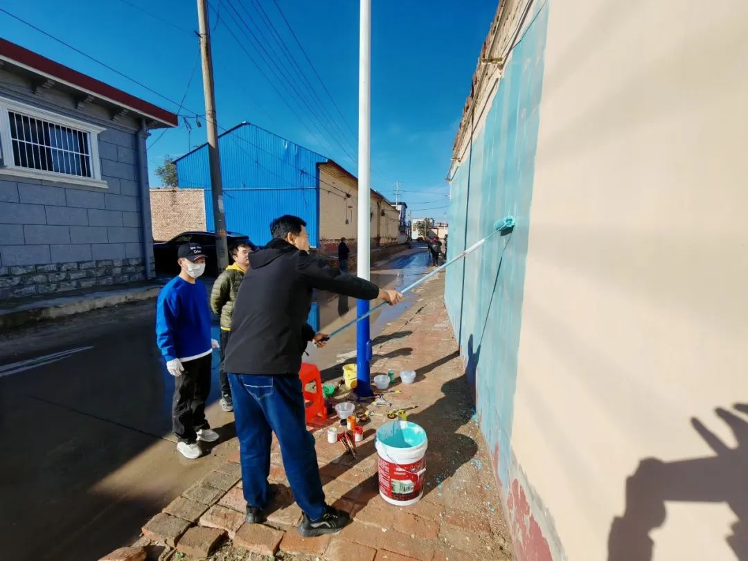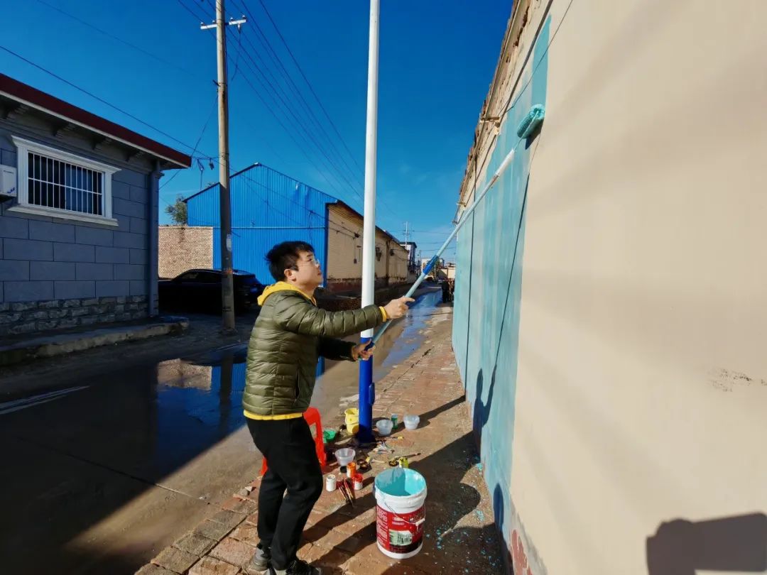 美术学院墙绘志愿服务团队的到来,为张兴屯村增添了浓厚的艺术氛围。学院毕业生李浩宇作为热心参与者,激动地说:“能为母校组织的这次乡村振兴活动贡献一份力量,我感到无比荣幸和自豪。每一笔、每一划都凝聚着我们对这片土地的热爱和对乡村振兴的美好愿景。虽然墙绘的过程并不轻松,我们忙了一整天,但想到能为张兴屯村带来变化,所有的辛苦都变得值得。”
