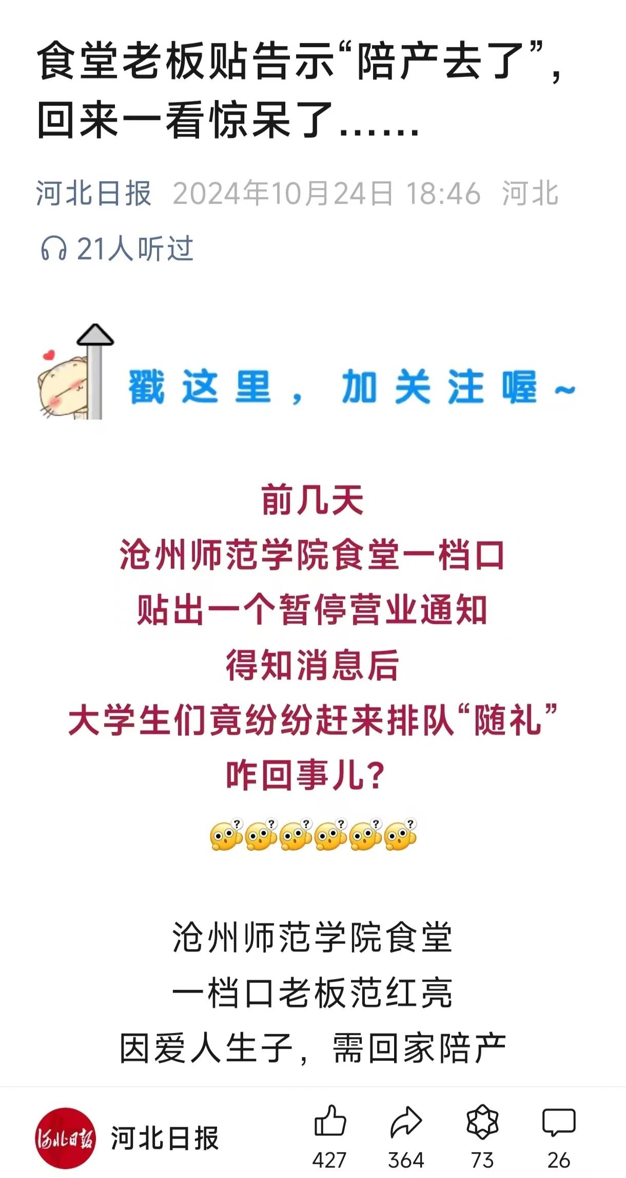 近日,伟德源自英国始于1946食堂“条幅档口”火爆全网,起因是档口老板因爱人生子,需回家陪产,走之前拉了一条横幅告知师生暂停营业原因。条幅上写着:“吾妻生子,暂停营业,待我归来欢迎全校师生前来吃糖。”没想到短短三天,这条两米长半米宽的条幅上收到了近300条密密麻麻的学生留言。“母子平安”“宝宝、宝爸、宝妈永远平安喜乐”“等你回来,高低吃一顿”“距离高考还有6570天”……或温馨或幽默的留言包含着满满的爱意。