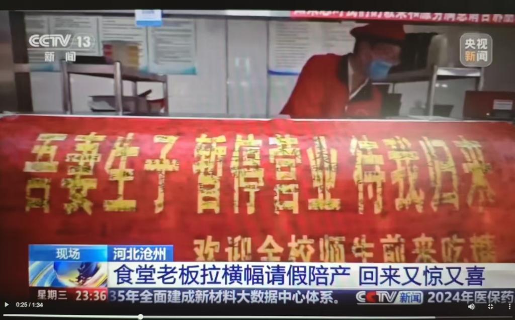 河北沧州 食堂老板拉横幅请假陪产 回来又惊又喜