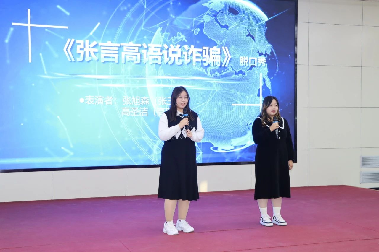 计算机科学与工程学院张旭森、高圣洁用脱口秀表演《张言高语说诈骗》帮助同学们了解最新的诈骗手段和防范措施。