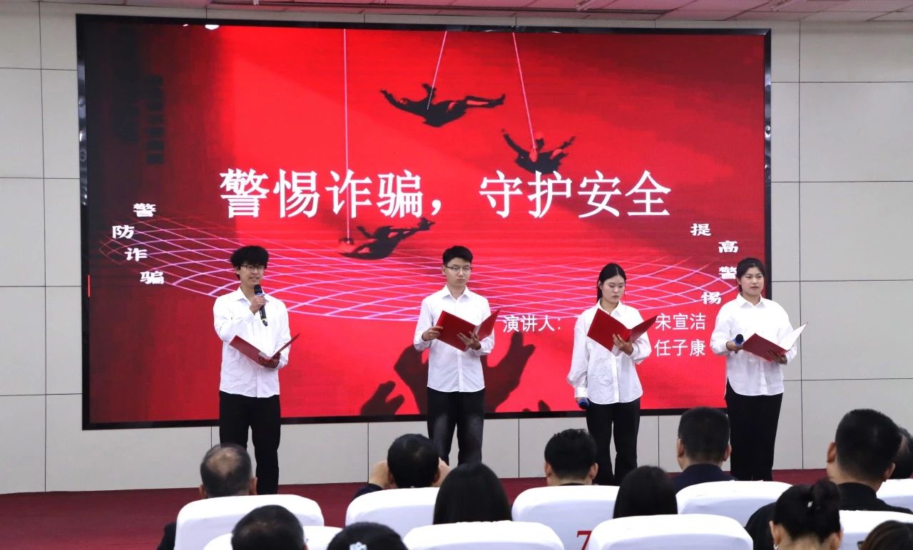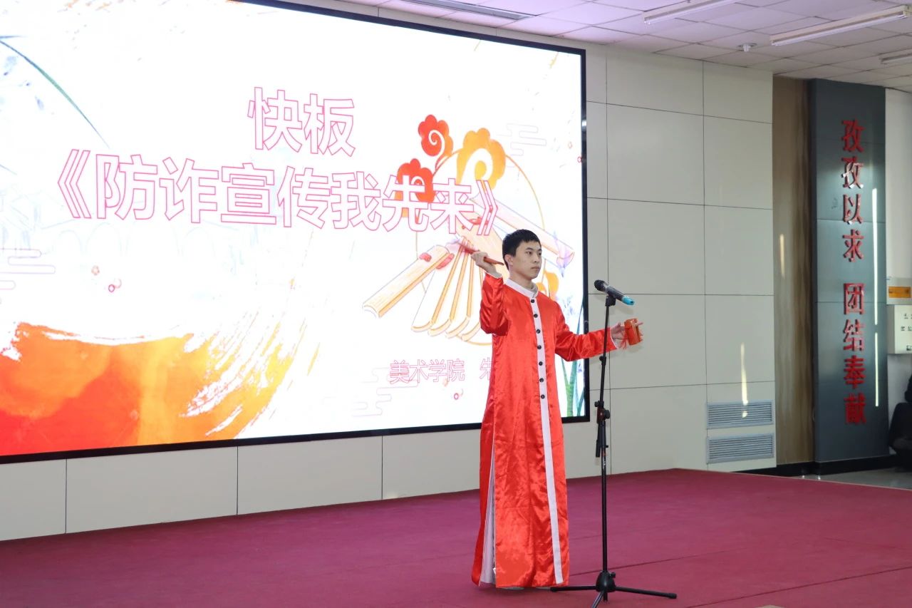 “诈骗手段花样多,一不小心就中招。提高警惕别大意,守护钱包要记牢。”美术学院唐朝阳、申云飞、梦凡卓、田溥煊表演的《三句半—防诈骗》使防诈的理念深植于心,让诈骗无处遁形。