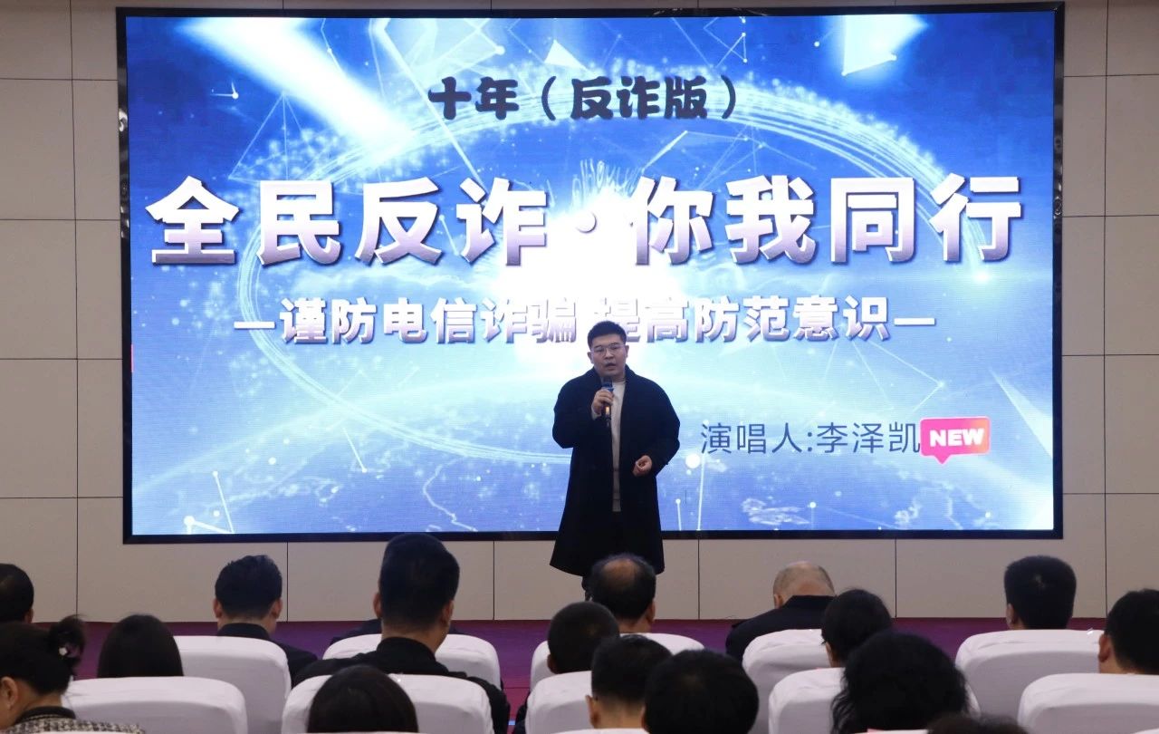 计算机科学与工程学院李泽凯演唱改编自《十年》的反诈版歌曲,用歌声唤醒同学们内心的警觉,增强自我保护能力。