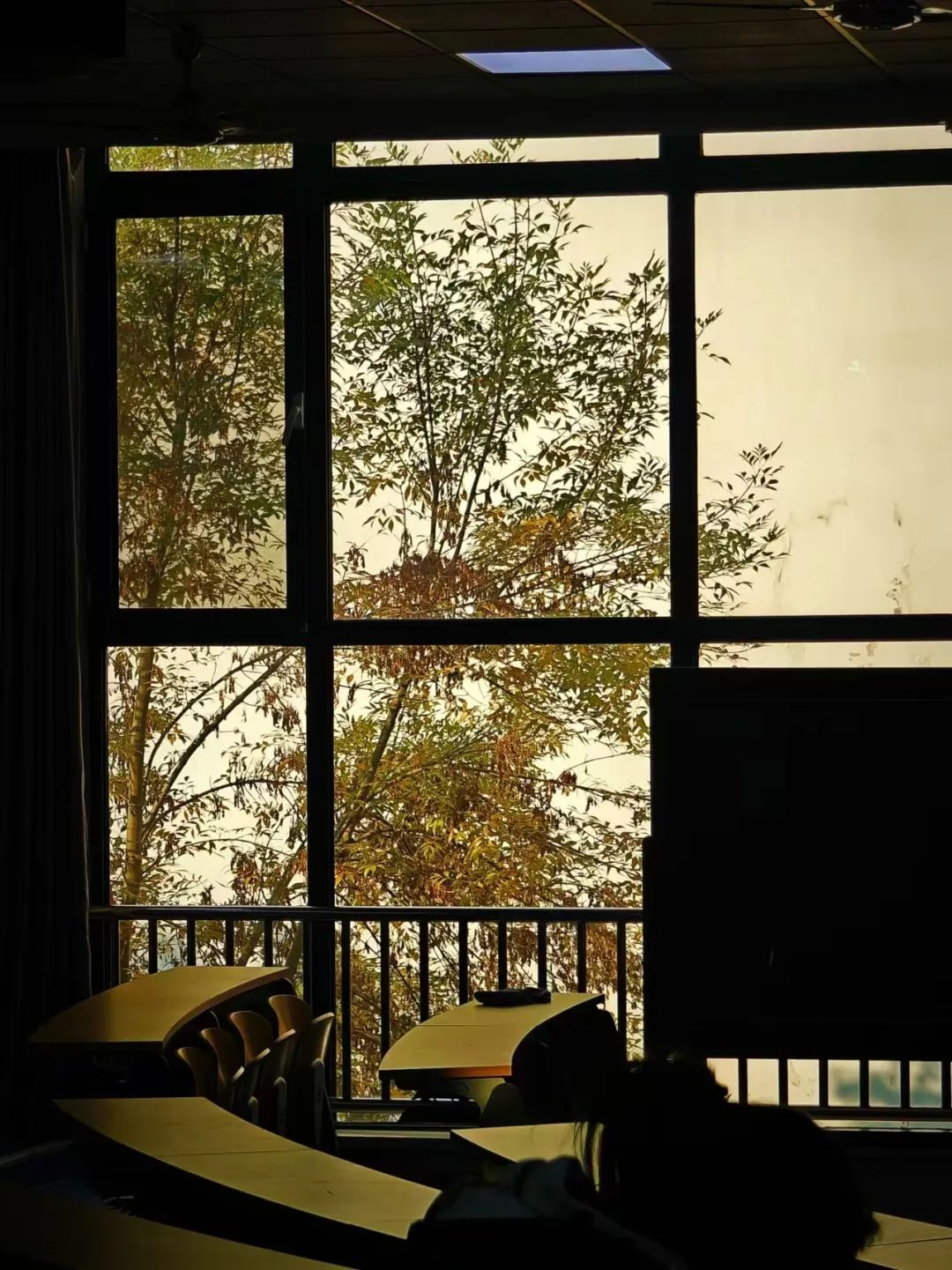 秋日晴朗,恰似春朝初秋的暖阳透过窗棂,钻过枝叶温柔地洒在桌上,便是奋笔疾书的学子运笔间,也会被秋天的馈赠勾动了心弦。秋风起,落叶舞,岁月静好,大学生活如诗如画