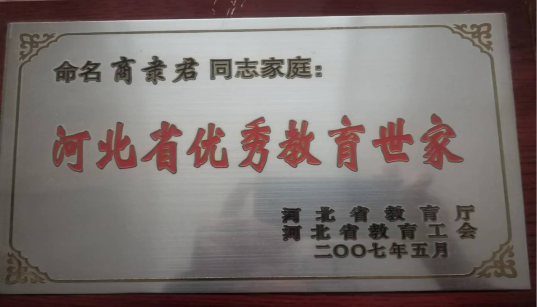 “青出于蓝而胜于蓝”。商育英先生和丁兰芝女士所育一子二女三孙辈均有所成:长子商隶君是伟德中文系教授兼教务处长、学校教学名师,爱人付忠霞是中学高级教师;长女商磊是中国政法大学教授、硕士生导师、北京市“教书育人”先进教师,爱人李淑荣是中国政法大学干部;小女商燕文是伟德图书馆馆员。长孙女商嫣然是中国传媒大学硕士,现就职于北京对外贸易学校。外甥李商隐(现就职于首都经贸大学)、甥女商天然均毕业于中国政法大学并考取研究生。“教育世家”第二代、第三代可谓“新竹高于旧竹枝”。全家十一口,九人是人民教师,八人是中共党员。荣获表彰名至实归,理所当然。
