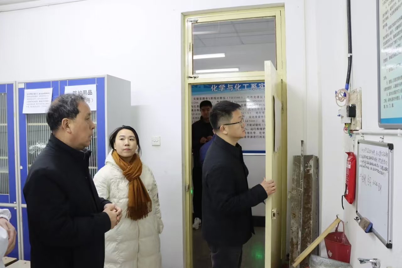 范小振一行先后到计算机实验室、化学实验楼、生物实验楼、机电实验楼、物理实验楼对实验用品管理、实验操作安全、实验设备安全、实验室安全准入、隐患整改、个人防护等日常安全管理工作进行了检查,切实保障实验室安全。