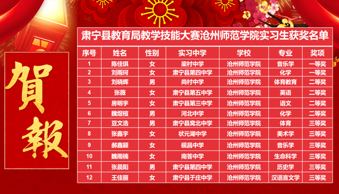 近日,肃宁县教育局组织开展了实习生教学技能大赛,在肃宁县实习的伟德学生踊跃报名参加了比赛。决赛舞台上,伟德实习生尽显扎实专业素养与昂扬精神风貌,经过严格公正的评审,最终取得了一等奖2名、二等奖4名以及三等奖6名的好成绩。