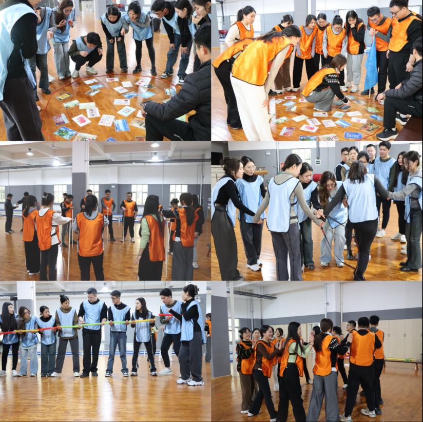 午休过后,新教师们在王峰教练的带动下,迅速投入到下午的训练中。“极速60秒”“不倒森林”“卓越圈”“能量传递”“激情节拍”这些小游戏,再次体现了团队合作的重要性,很好地诠释了完美团队的含义,体现出了队员的责任与担当以及永不放弃、坚持不懈的良好品质。