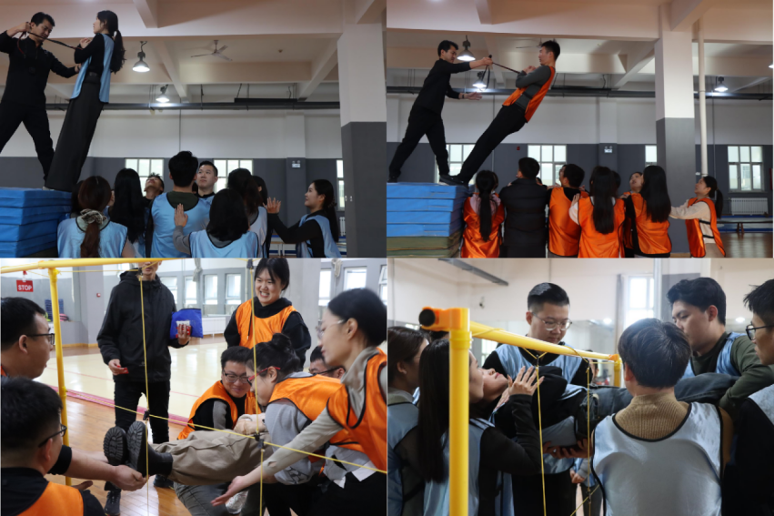 “梦之队”和“龙卷风队”在两位教练的带领下,迅速投入到信任背摔和穿越电网的游戏活动中。信任背摔极大考验了队员之间的信任与合作能力,让大家深刻体会到了团队间的默契与支持。穿越电网时,各队老师团结协作制定策略,迅速完成了游戏任务。