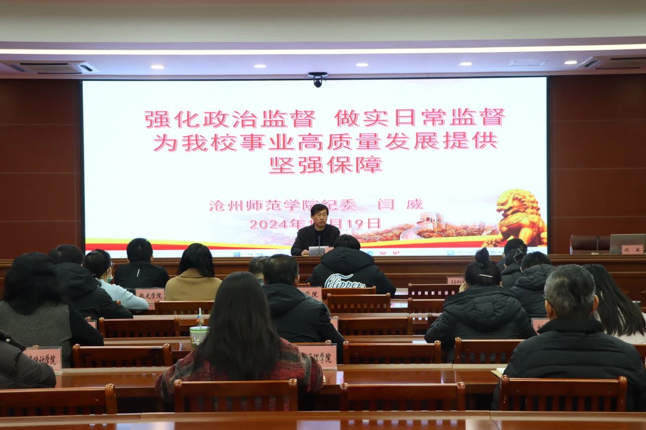 事成于严,业兴于实。为深入学习贯彻党的二十届三中全会精神和李希同志在南京大学调研时讲话精神,进一步加强基层纪检队伍建设,提高纪检监察干部的政治素质和业务水平,做好高校纪检监察工作,12月19日,校纪委组织开展专题培训会,校纪委副书记谷良峰主持会议,校纪检监察室闫威主讲,各学院党总支、机关各党支部纪检委员、专职纪检干部参加培训。