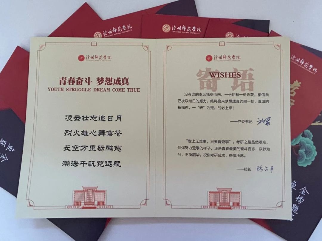 随着考研日的临近,为助力考研学子坚定信念、勇往直前,学校联合各院系精心筹备“研至有礼”系列活动,一份份专属的祝福礼物满载深情祝福,为学子的逐梦之旅增添一抹温暖而明亮的色彩。