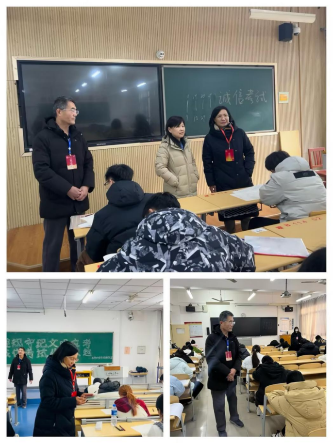 校级督导专家们全力投入到细致入微的巡视工作中,聚焦考场布置的各个环节,从手机管控、书包摆放的规整,到诚信考试宣传张贴的醒目与否,皆细细审视;考风考纪是巡查的核心要点,督导专家们时刻留意考场内的细微动态,全力维护考试的公平公正;教师监考职责的履行情况也在严密的考察范围内,从准时到岗的坚守,到监考全程的专注负责,均严格把关;学生干部示范引领作用的发挥同样成为督导重点,他们在诚信考试风尚倡导示范等方面的表现,亦是本次督导的关键看点。