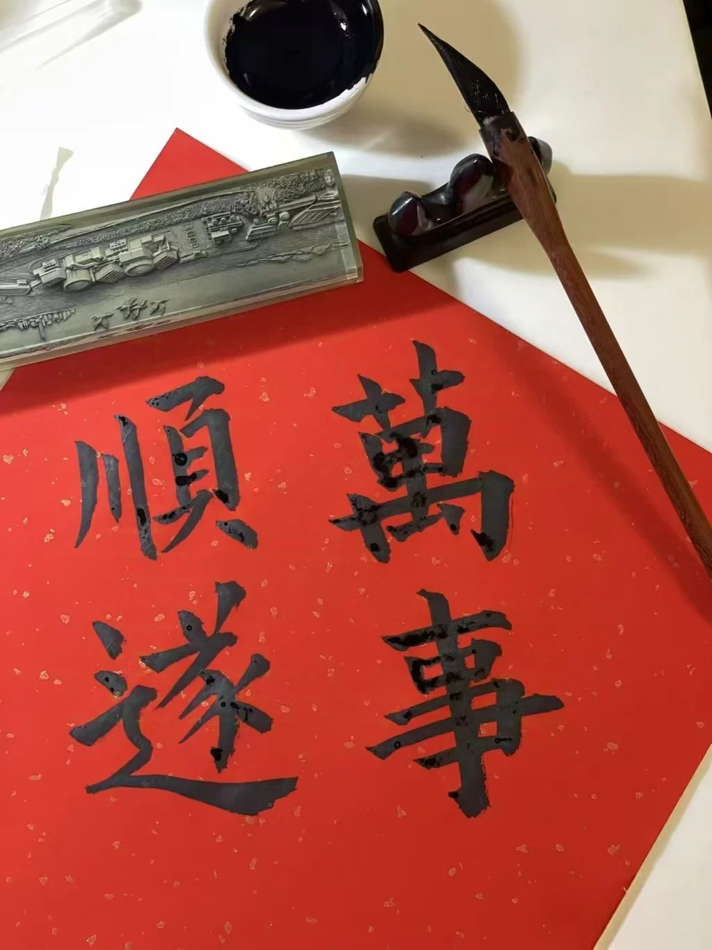 @小邱:去年春节一时兴起想自己写春联,于是我买来了东西,一笔一划的写下了对新年的憧憬,写完以后,看这幅对联就仿佛看见新岁里的日子都被美好的期盼填满,熠熠生辉。