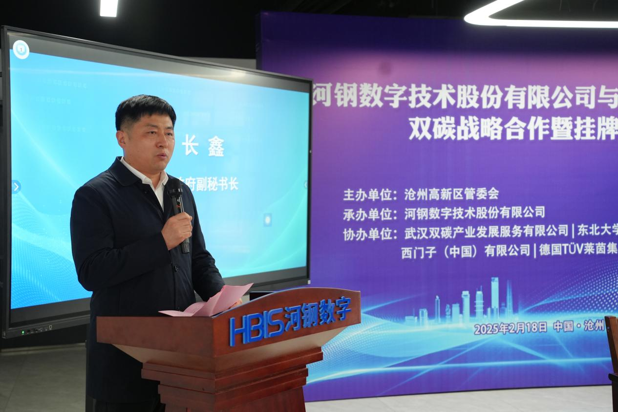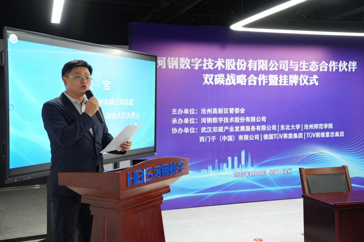 河钢数字技术股份有限公司总监、数字工业事业部书记、华东大区负责人安宝在致辞中指出,河钢数字技术股份有限公司作为河北省碳达峰碳中和公共服务中心的建设、运营单位,为政府、园区及企业用户提供双碳数字化、综合能源管控、碳资产管理、企业绿色转型、绿色金融等服务。期待与合作伙伴在产学研、绿色低碳、工业互联网、零碳园区打造、能源管理等方面进行深度合作,共谋京津冀双碳产业发展大计,共创绿色低碳的美好未来。