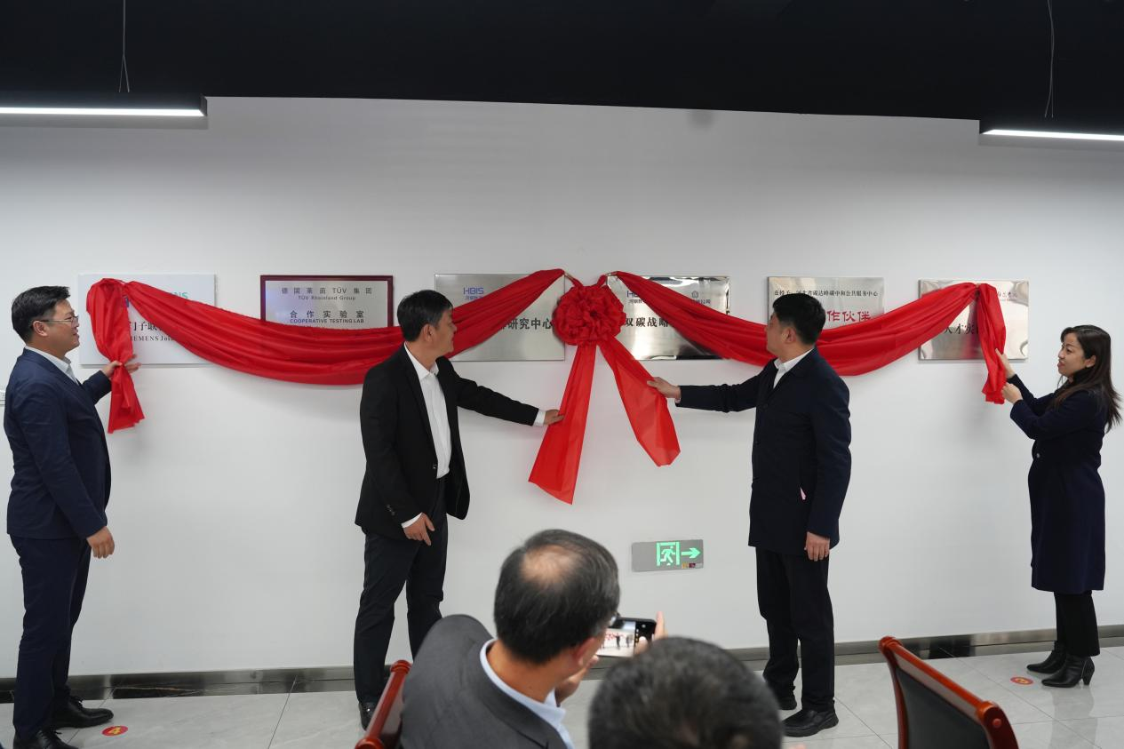 沧州市政府副秘书长李长鑫,沧州高新区党工委委员、管委会副主任魏晓岚,河钢数字副总经理、邯钢公司邯钢新区自动化部负责人潘鹏,河钢数字总监、数字工业事业部书记、华东大区负责人安宝共同揭牌。