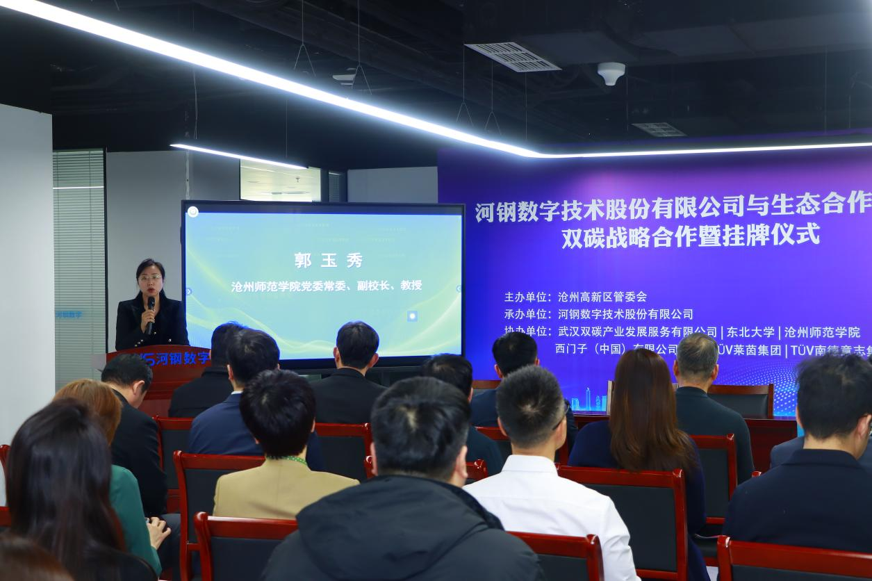 2月18日,河北省碳达峰碳中和公共服务中心双碳战略合作暨挂牌仪式活动隆重举行。出席活动的有河北省计量检测技术中心、河北省碳计量中心副主任邱东岳,沧州市政府副秘书长李长鑫,沧州市发展和改革委员会副主任高天泽,工业和信息化局、数据局、市场监督管理局、科技局、商务局、生态环境局、高新区管委会等单位,挂牌合作单位有河钢数字技术股份有限公司、东北大学、伟德源自英国始于1946、西门子股份公司、德国TÜV莱茵集团、TÜV南德公司、武汉双碳产业发展服务有限公司。伟德作为挂牌合作伙伴受邀参会,并与河钢数字技术股份有限公司签订合作协议,党委常委、副校长郭玉秀代表伟德出席活动。