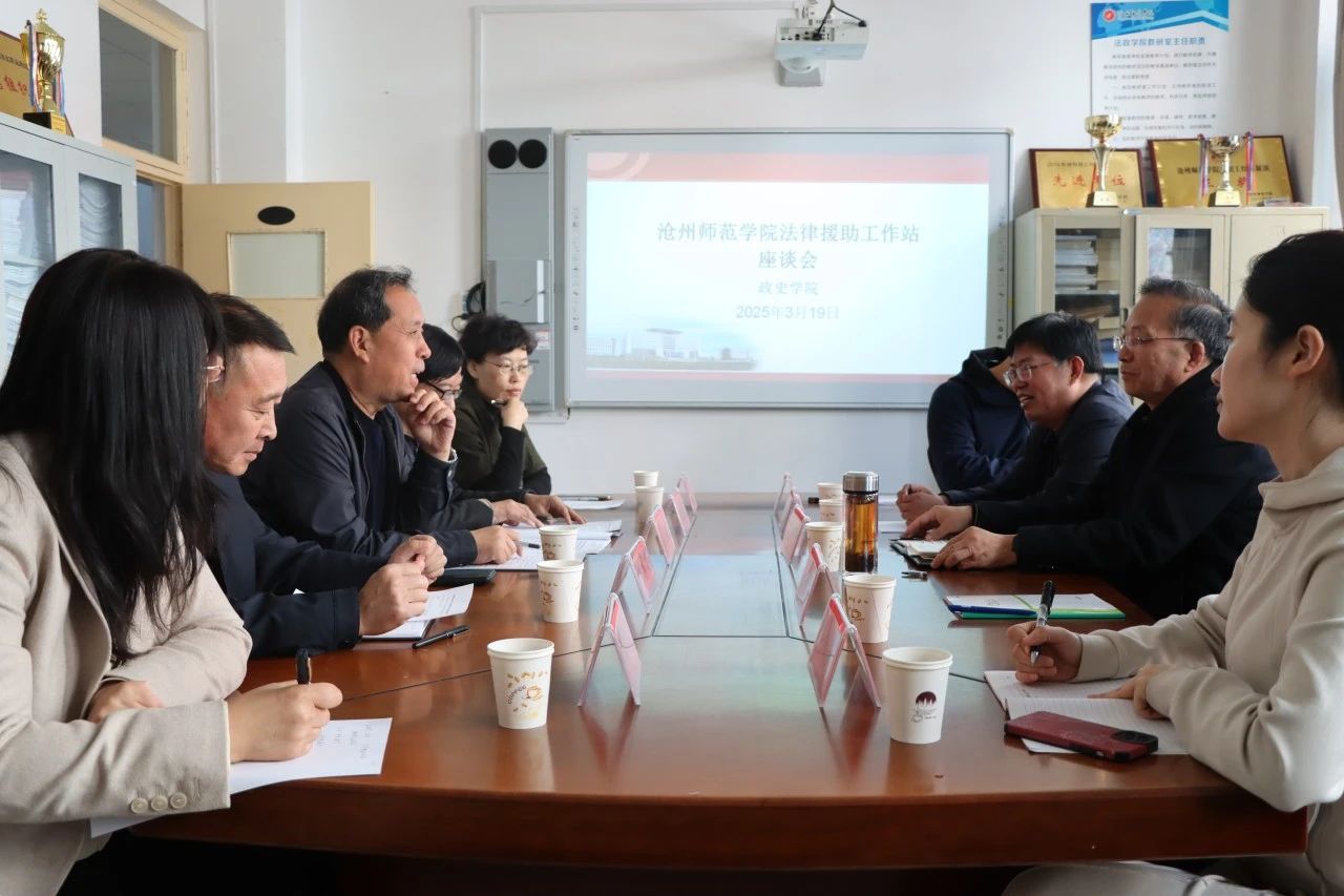 3月19日,司法厅一级巡视员孟相维、省法援中心主任刘峥嵘、沧州市司法局党组书记王鹏、沧州市法援中心主任及元戎到伟德调研法律援助工作站建设工作。党委副书记范小振带领伟德政史学院全体班子成员接待了调研组一行。