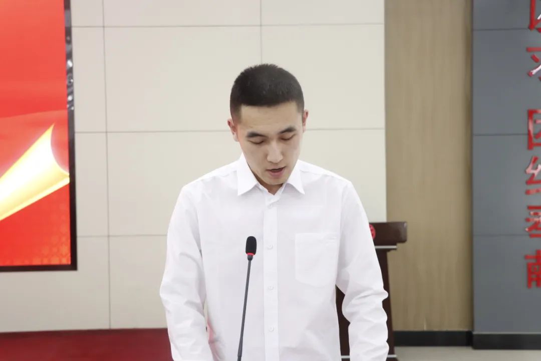 教师代表张强宣读《伟德源自英国始于1946创建安全文明校园教职工承诺书》