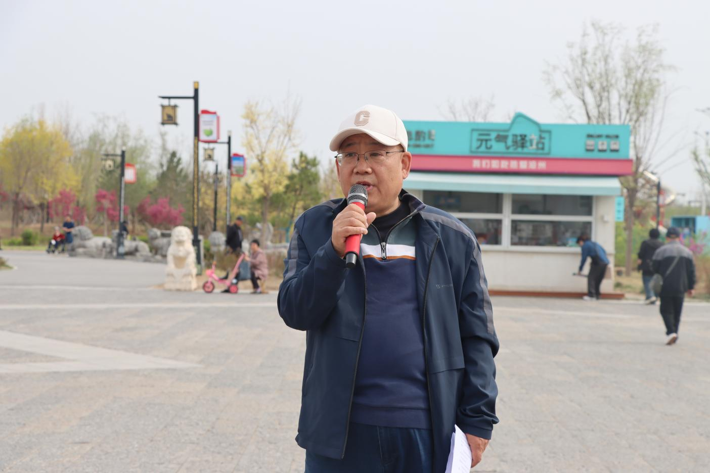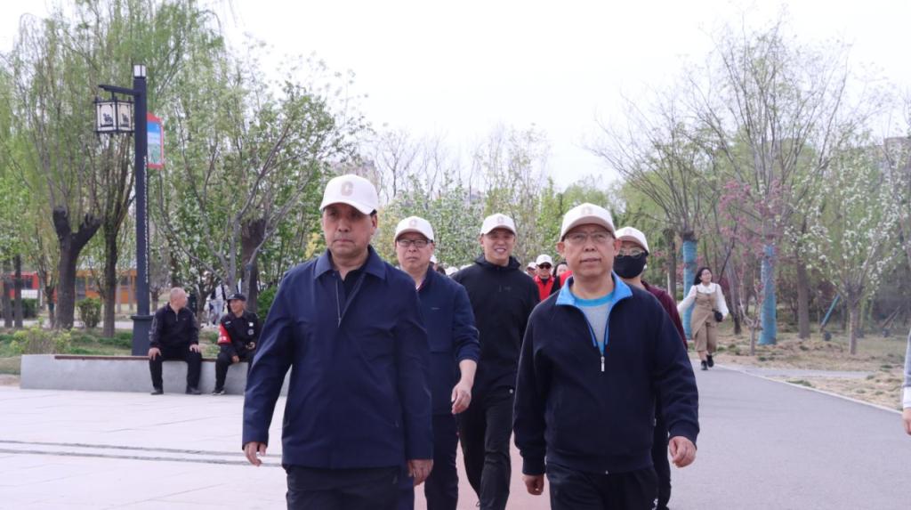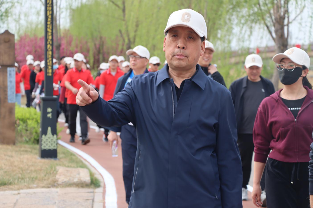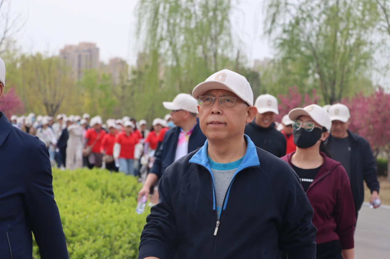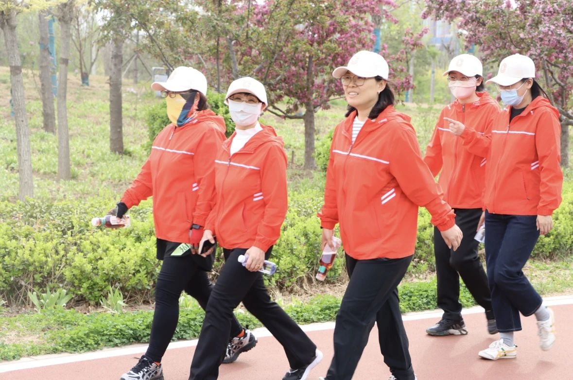 春潮涌动,步履不停。校长张占平发令,宣布健步走活动开始。
