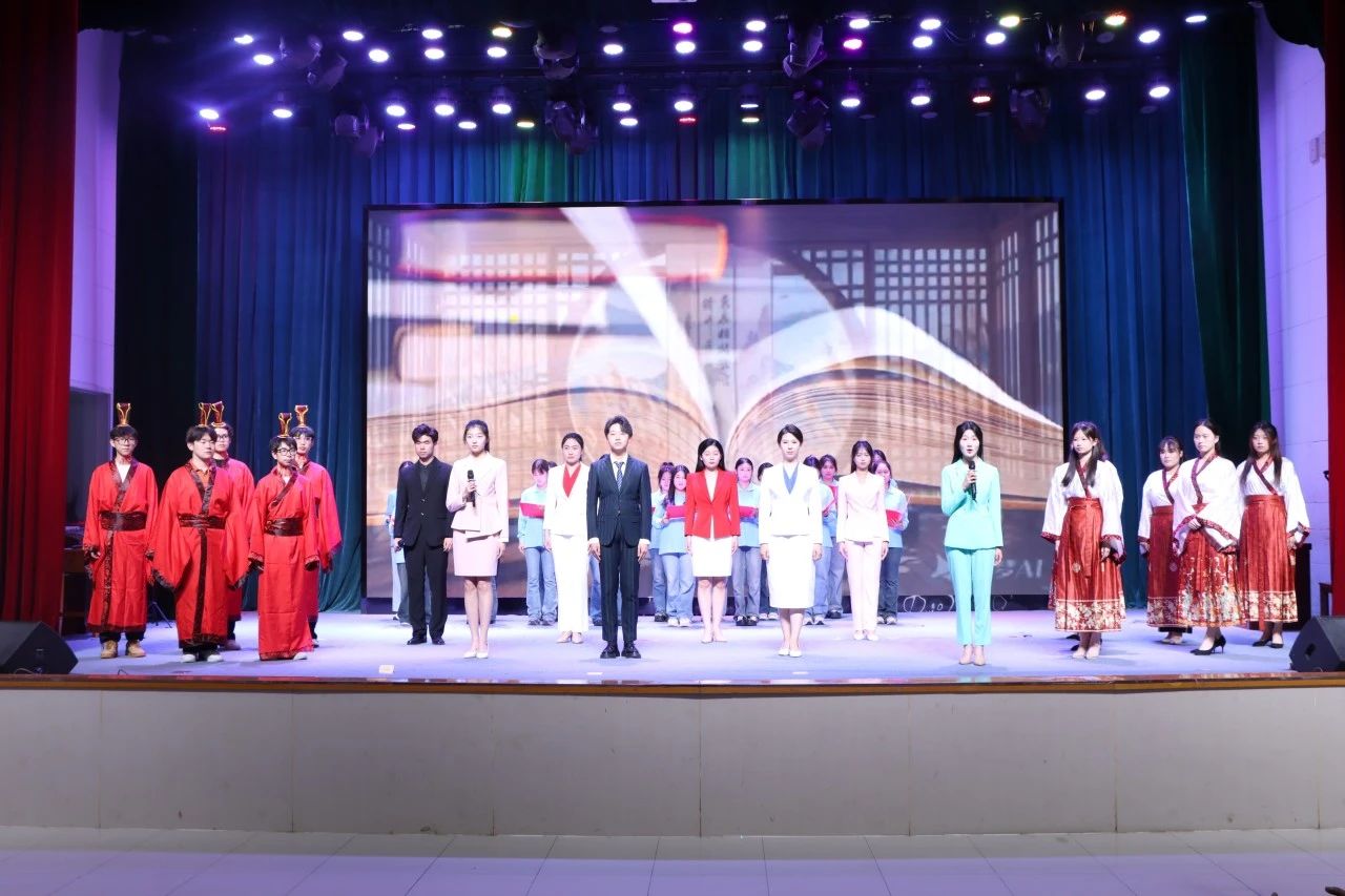 4月23日,伟德2025年读书节在冀春音乐厅开幕,党委常委、副校长高颖、朱蓬华,沧州市孔子学会秘书长孔维涛,沧州市新华书店总经理吴晓东,沧州周易研究会常务副会长田新刚出席开幕式。