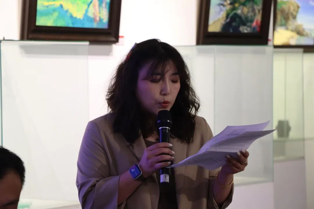 在艺术场馆内,与会教师通过“与科学家的隔空对话”,开启了一场头脑风暴,共同碰撞出“思政课程+课程思政”建设的创新思路和全新感悟。教务处处长何兰芝、马克思主义学院院长刘贵振、马克思主义学院教师张卓、美术学院教师张菲菲分别从不同角度分享了如何在课程中融入科学家精神,提出通过集体备课、案例分析和沉浸式教学等方式加深学生理解。他们特别强调了利用美术作品和隔空对话等创新形式,让学生直观感受科学家精神。