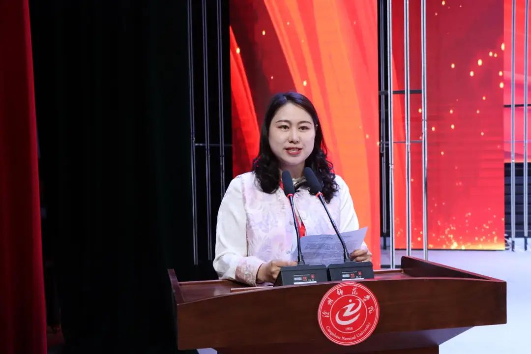 承德市双桥区大石庙中心小学校长李春明和石家庄藁城区实验学校教师蔡榕代表参训学员作表态发言。