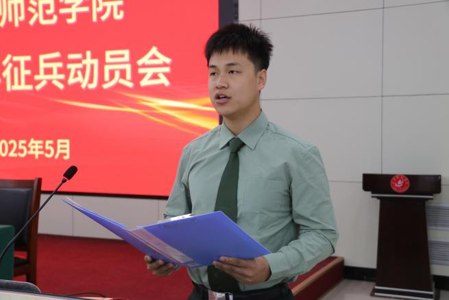 高颖在讲话中指出,为确保高质量开展征兵工作,各学院要切实把大学生征兵工作摆在突出重要的位置,高效组织推动。一是提高政治站位,强化责任担当;二是健全协同联动机制,强化组织保障;三是完善全流程服务体系,做好应征入伍学生坚强后盾。她激励同学们以树立家国情怀为引领,将青春理想融入强军强国伟大事业。