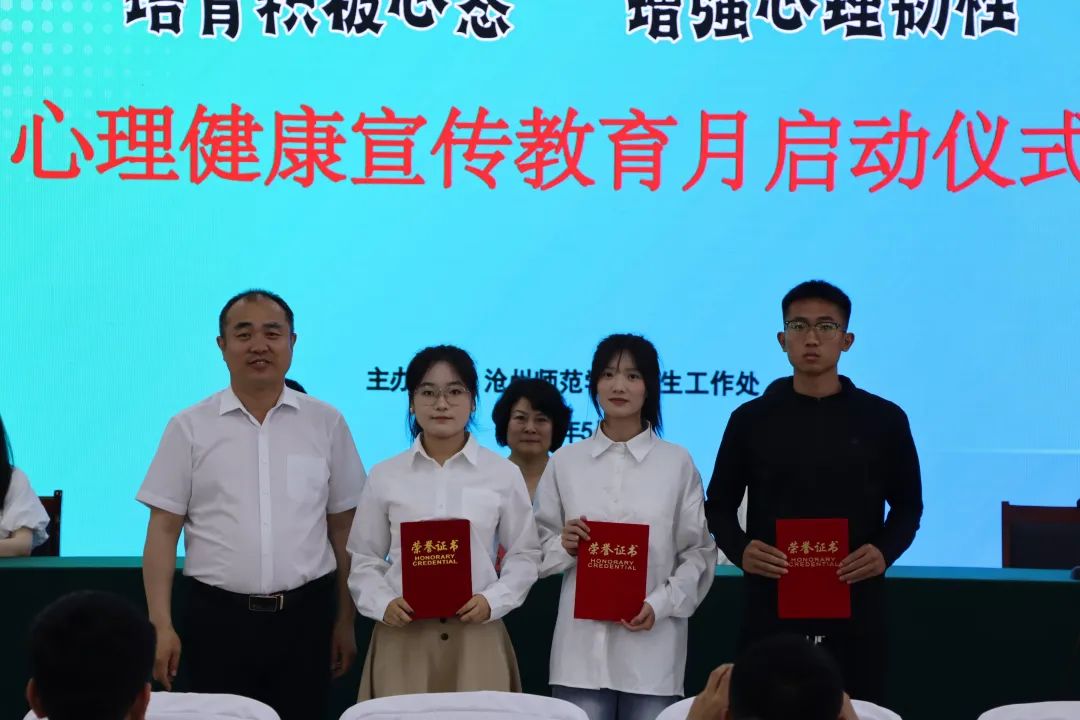仪式上,学生处处长辛智广和副处长王景胜宣读了《伟德源自英国始于1946心理健康宣传教育月活动方案》《关于表彰优秀心理委员的决定》和《关于表彰心理健康形象大使的决定》等文件,与会领导向获得表彰的人员颁发了证书。