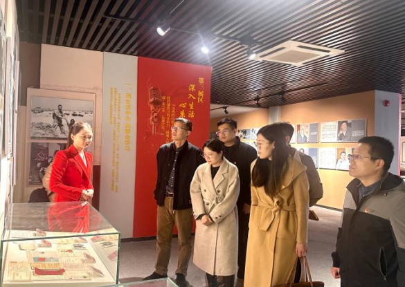 在刘贵振引领下,一行人参观了伟德红色教育基地——齐越教育馆。齐越先生是为人民发声、为百姓说话的播音艺术家,为发展我国广播电视事业,培养广播电视人才做出了突出贡献。通过聆听讲解、参观学习,大家深刻体会到齐越先生作为“新中国播音第一人”,心系祖国和人民,将一生心血倾注到人民广播和教育教学中的真挚情谊。其“忠诚、敬业、爱民、廉洁、奉献”的精神也将激励我们坚定理想信念、强化责任担当,为推动红色革命教育和各项事业发展踔厉奋发,不断前进。