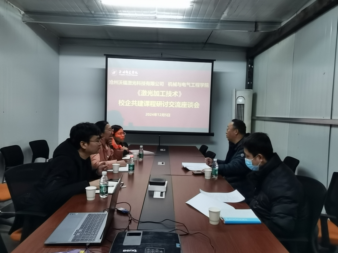 12月5日上午,机械与电气工程学院院长鲁明珠、副院长赵治月、机械电子工程专业负责人刚建华一行赴校企合作基地——沧州沃福激光科技有限公司,就进一步推进校企融合课程共建进行座谈研讨,共同探讨校企合作新模式,推动人才培养与产业发展的深度融合。沧州沃福激光科技有限公司总经理贺昌玉、工程师李增祥出席研讨会。
