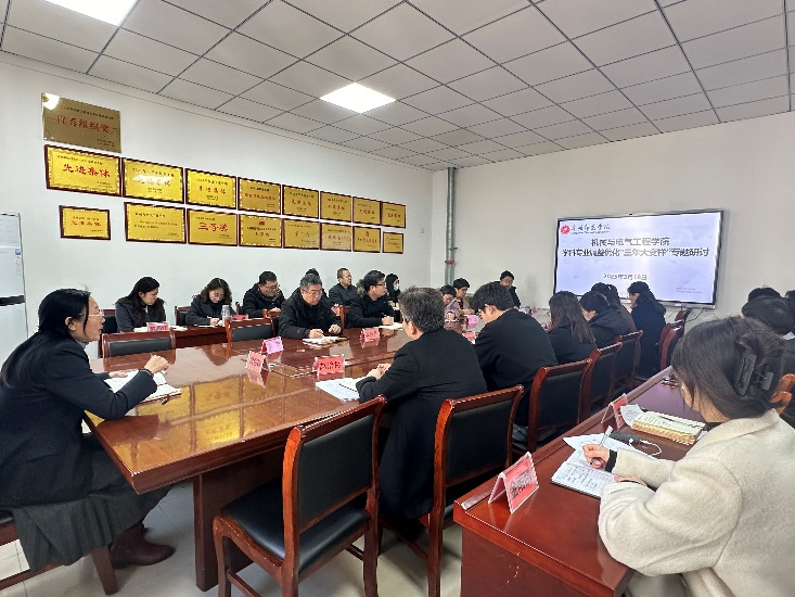3月18日下午,机械与电气工程学院召开学科专业调整优化专题学习讨论会,学习贯彻伟德《关于做好学科专业调整优化“三年大变样”行动方案工作的通知》精神。学院院长鲁明珠主持会议,副院长赵治月及全体教师参加学习讨论会。