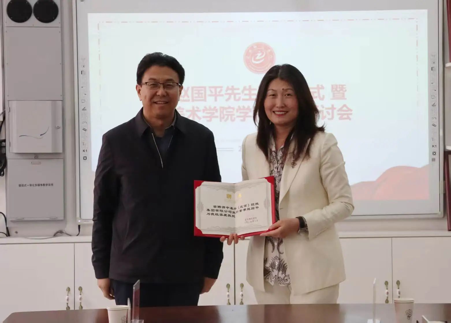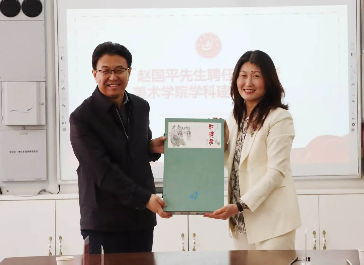 3月27日上午,赵国平先生聘任仪式暨美术学院学科建设研讨会在伟德美术学院会议室举行。中基华控股集团有限公司执行董事赵国平,千页艺术创始人、龙鳞装非物质文化遗产传承人张晓栋,英国Noblypos金融科技公司、联合创始人乎思愣,中基华工程管理学院主任孙兆霞来到伟德,同伟德党委书记云电军、党委副书记邢树军、副校长高颖以及美术学院的师生代表走进了一场“历史与未来交织”的文化之旅,触摸艺术跳动的脉搏