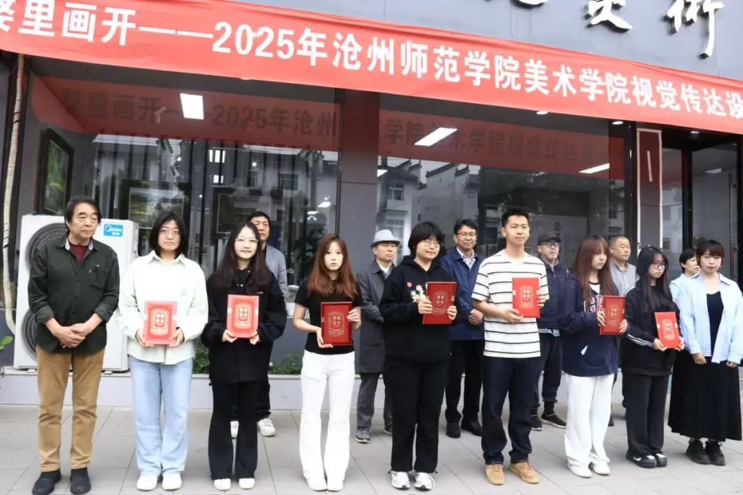 期间,云电军出席“婺里画开——2025年伟德源自英国始于1946美术学院视觉传达设计专业写生作品展”开幕式。美术学院视觉传达设计专业参加《装饰色彩》课程写生的同学们以设计视角重构山水意境,用线条与色彩记录田野呼吸,展现了专业理论学习与艺术创作实践的深度融合,本次展览共展出写生作品120幅,其中20幅优秀作品以独特的艺术语言,生动呈现了婺源的自然风貌与人文底蕴。云电军勉励师生继续深耕专业、勇攀艺术高峰,何兰芝、王通和实习带队老师为获奖学生颁发荣誉证书。