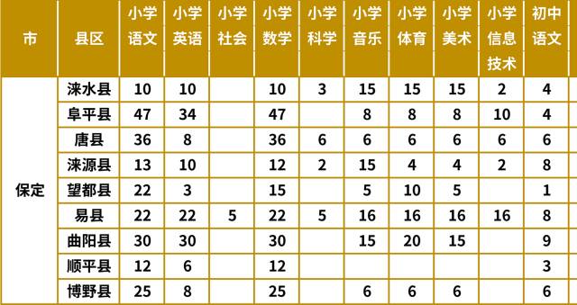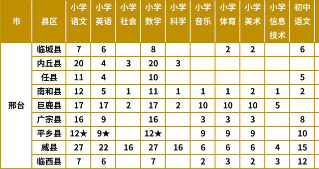 (注:小学特设岗位需求中带“★”号者,根据设岗县岗位学历要求只招收本科及以上学历)
