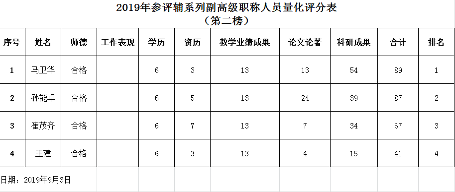 副高级职称(辅系列)拟推荐人选名单:高级实验师马卫华。