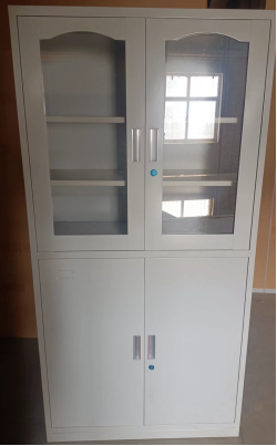 采用国标优质冷轧钢板,厚度为≧0.8mm,铝合金扣手;柜体颜色为灰白色;表面处理采用乳化剂和碱性助洗脱脂、磷酸除锈、锌系薄膜型磷化、边角钝化,最后粉末喷涂;要求表面光滑美观,无明显凹凸感;
