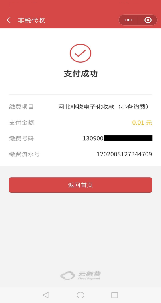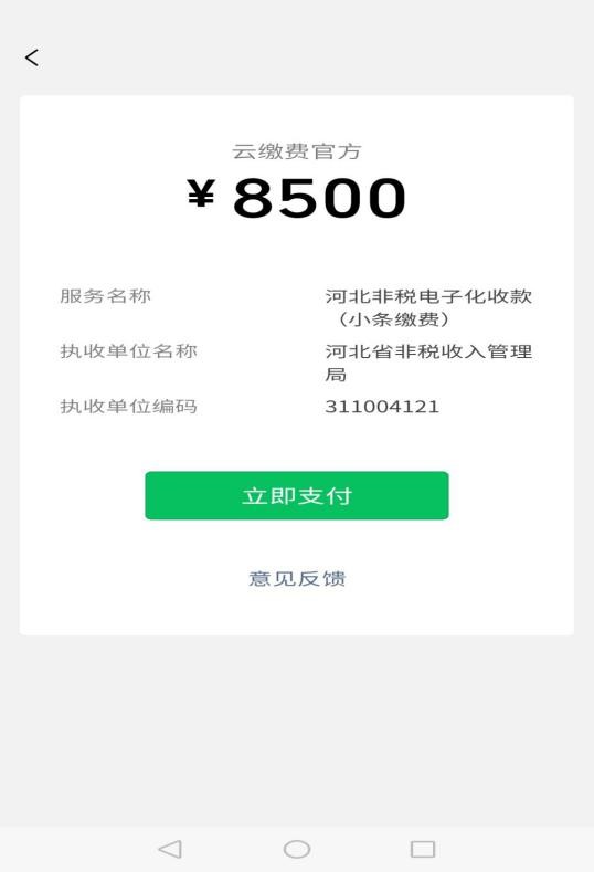 3、系统自动返显缴费信息,核对无误后点击去支付。