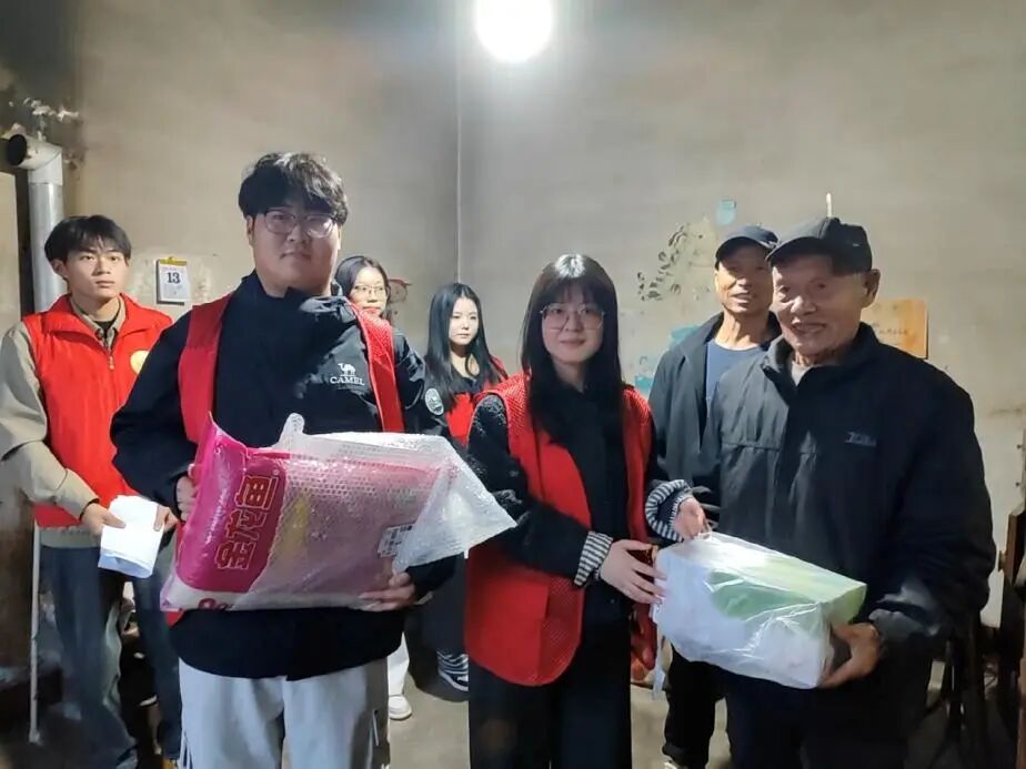 宣讲结束后,张金峰和李琳带领志愿者们深入老年村民家中开展慰问,为老人们送去了生活物资。在村民家中,张金峰与村民亲切交谈,详细询问了老人的日常生活和身体状况。
