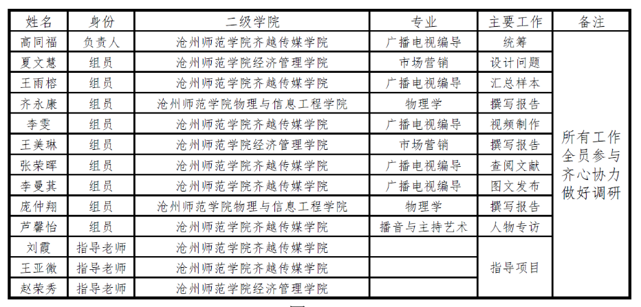 在此次项目筹备过程中,齐越传媒学院刘霞老师、王亚微老师、经济管理学院赵荣秀老师陪伴队员一起探讨、共同成长。团队通过线上讨论、腾讯视频会议、问卷调查、人物访谈、线下实践、查阅文献等多种方式展开调研,团结协作、取长补短,最终取得佳绩。