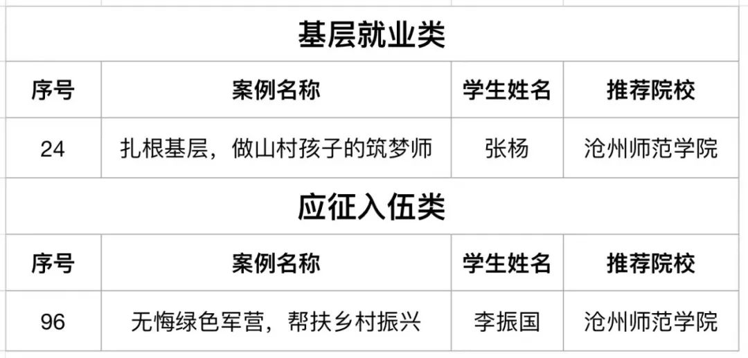 经省教育厅组织专家评审,在全省各高校推荐的329个案例中,最终遴选出基层就业类50个、自主创业类25个、应征入伍类25个,共100个典型案例。其中伟德文学院2016届毕业生张杨、2020届毕业生李振国分别入选基层就业类、应征入伍类典型案例。