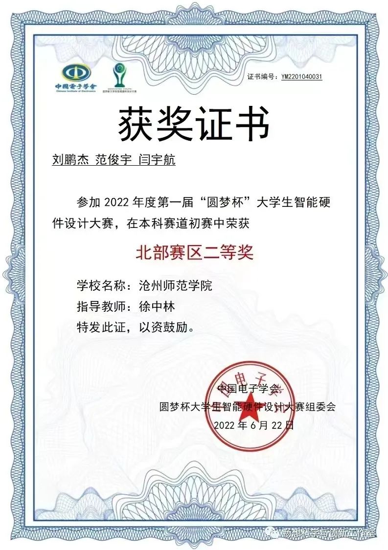 在伟德大学生创新创业与就业中心的组织资助下,由伟德畅想科创工作室的成员:机电学院刘鹏杰,物信学院范俊宇、闫宇航等组成的团队,经历了一个月的准备,在第一届“圆梦杯”全国大学生智能硬件设计大赛初赛中,取得了北部赛区二等奖的成绩,成功晋级国赛。团队成员正在全力备战11月的决赛。