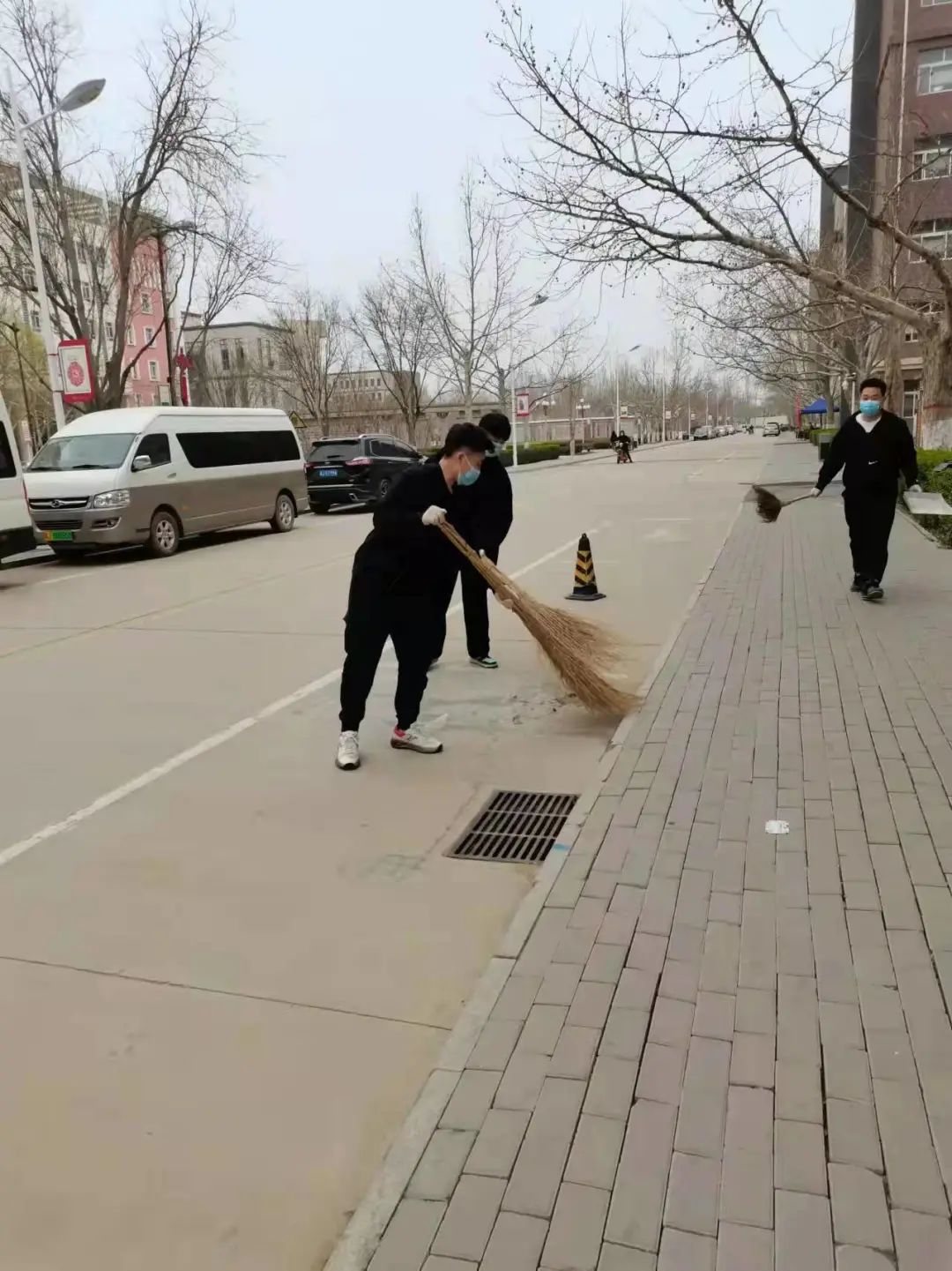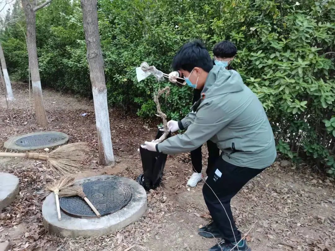 疫情期间,因全市实行封控管理,很多老师不能到校,致使学校各个岗位人手紧缺,工作担子加重,美术学院的同学们看在眼里、急在心上,想着能为学校出一份自己的绵薄之力,为老师们分担些工作,他们商量之后,便立即请示学院领导老师,希望能帮助老师和保洁人员清理校园卫生。经学校指挥部研究批准,张倩便带领同学们对宿舍1号楼至12楼整个宿舍区、食堂周围、语音楼前的花园、文化广场、文科楼西侧及甬路、宿舍区生活广场等多地的环境卫生进行了彻底清理,从中午到晚上7点,将这些地方的打扫得干干净净。