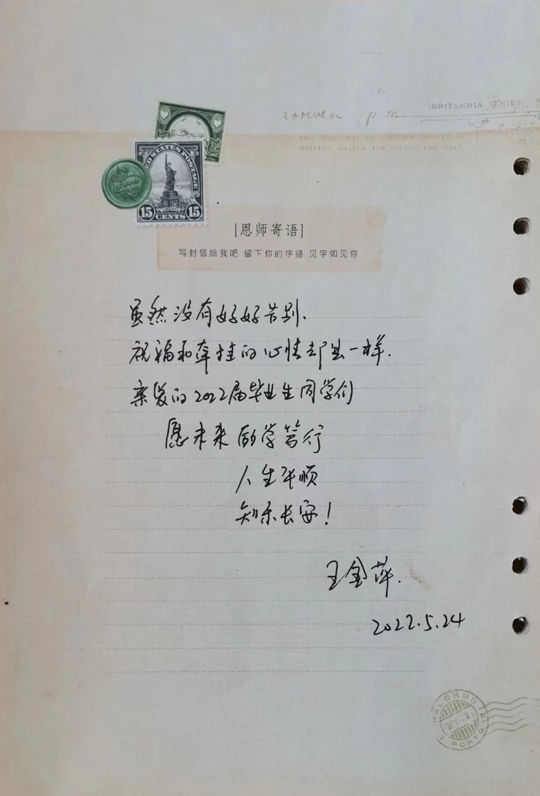 校园里绿荫渐浓、骊歌渐起,又到了一年毕业季,毕业生们纵使有再多不舍,也不得不告别美好的大学生活,去奔赴人生的下一场旅行。纸短情长,心意浓浓。文学院的老师们将不舍与牵挂化为嘱托与祝愿,融入手写寄语中,为同学们指明前进的方向,寄托人生的哲理。下面就让我们一起来看看,老师们想要对即将远行的学子说些什么吧!