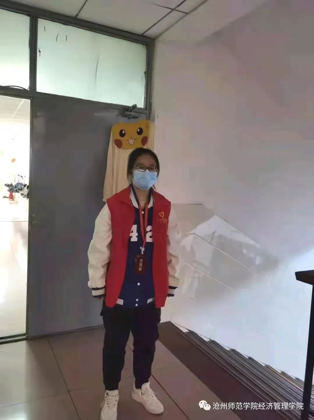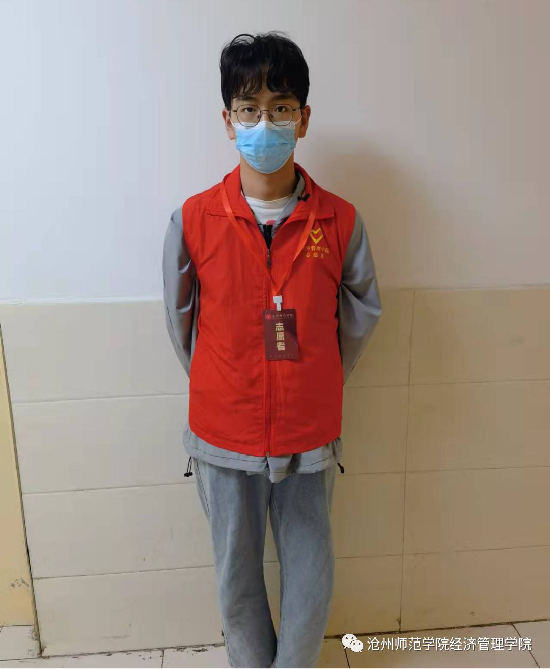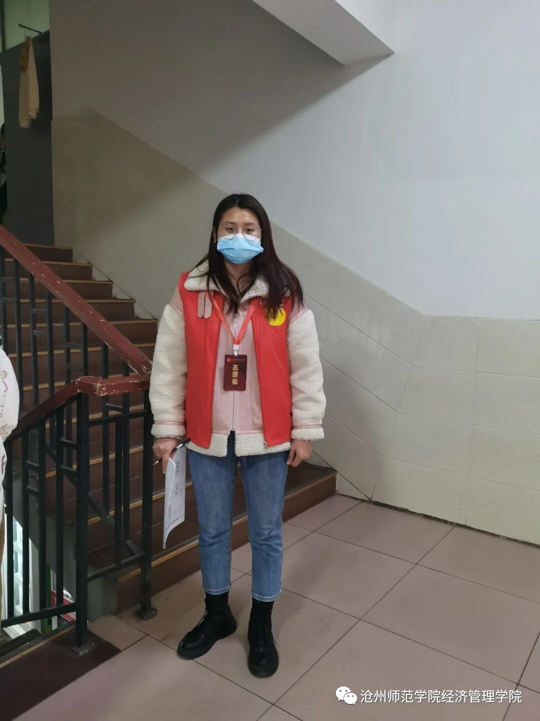 自沧州疫情以来,学校领导老师日夜坚守,我想,作为一名学生干部又怎么能退缩。在导员的推荐下,我成为了一楼的层长,协助楼长管理本层同时身为班长,在班级事务上我也尽量帮忙。我深知自己肩上的责任,这次疫情也更加锻炼了我自己的毅力和处理紧急事情的能力。很荣幸我成为一名志愿者,我相信没有一个冬天不能逾越,没有一个春天不会来临。