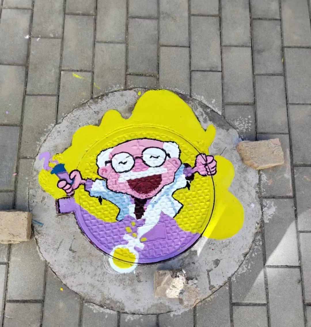 “哇,今天去一食堂吃饭的时候发现井盖上画了我喜欢的卡通人物,真的好喜欢啊!又是元气满满的一天!”