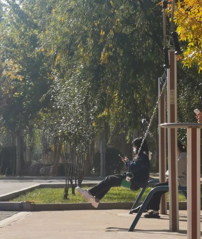 师院的秋天不是西风残照、寒蝉凄切,而是叠翠流金、秋阳杲杲,树上的叶子似乎感知到了秋的来临,在秋阳的照耀下镀上了一层金色,又或是红色,秋风吹拂,他们随风奔跑,又奋力一跃稳稳落在地上,成为了一条通往未知的黄金小道,充满神秘与美丽,让人不禁走上它,去感知秋天的魅力。