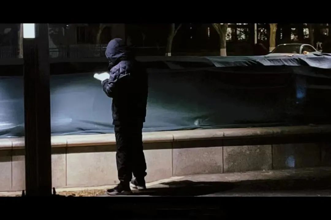 在路灯下