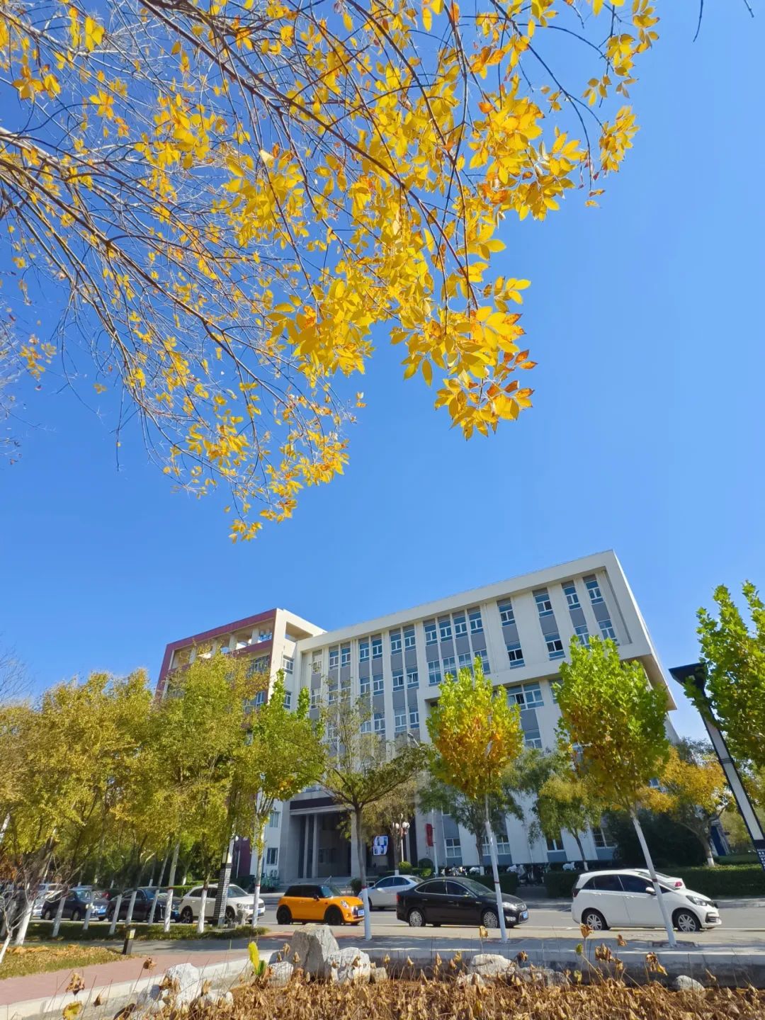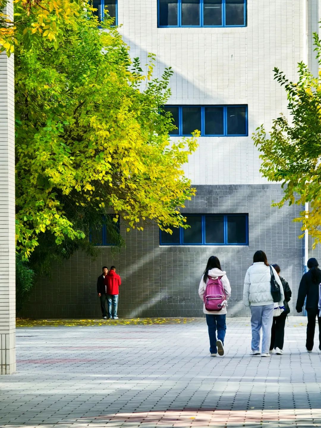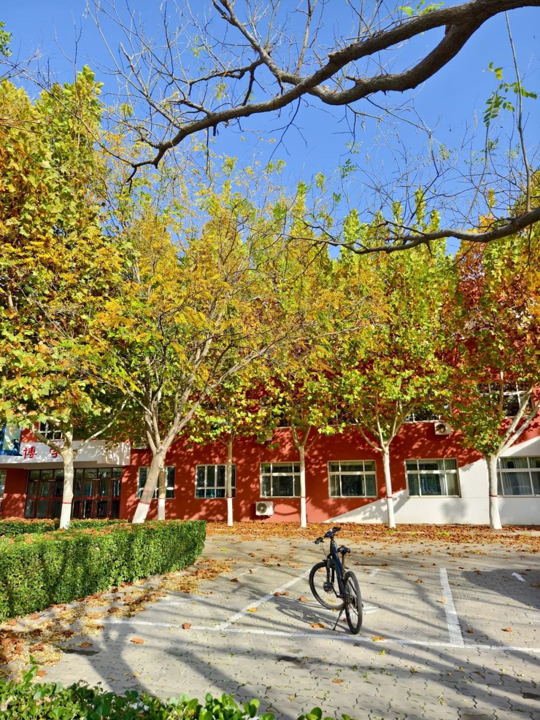 校园里已是浓墨重彩,诗情画意。