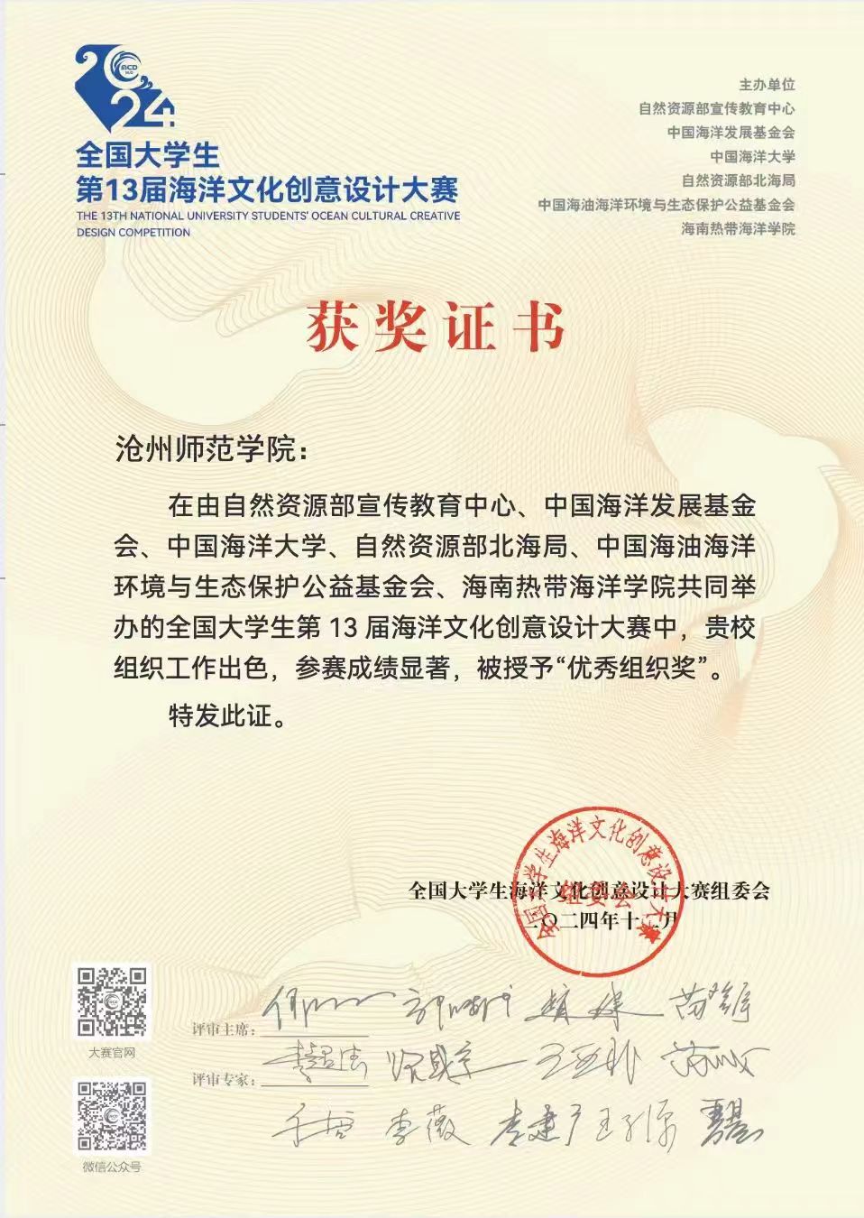 近日,全国大学生第十三届海洋文化创意设计大赛圆满收官。本届大赛由自然资源部宣传教育中心、中国海洋大学共同主办,以“海洋·共生·未来”为主题,面向全国大学生征集优秀作品,旨在倡导跨学科交叉合作,通过艺术、科学和经济等多个领域的融合,立足于海洋的可持续发展和人类与海洋的和谐共生,共同探讨解决当今海洋面临的重要问题,为海洋管理提供科学解决方案,为海洋注入新活力,推动构建人类海洋命运共同体。在此次大赛中,伟德凭借出色的组织工作与对海洋文化创意事业的积极推动,荣获优秀组织奖。这份荣誉不仅是对学校精心搭建创新实践平台、激发师生创作热情的高度认可,更彰显了其在海洋文化传播与人才培养方面的卓越成果。