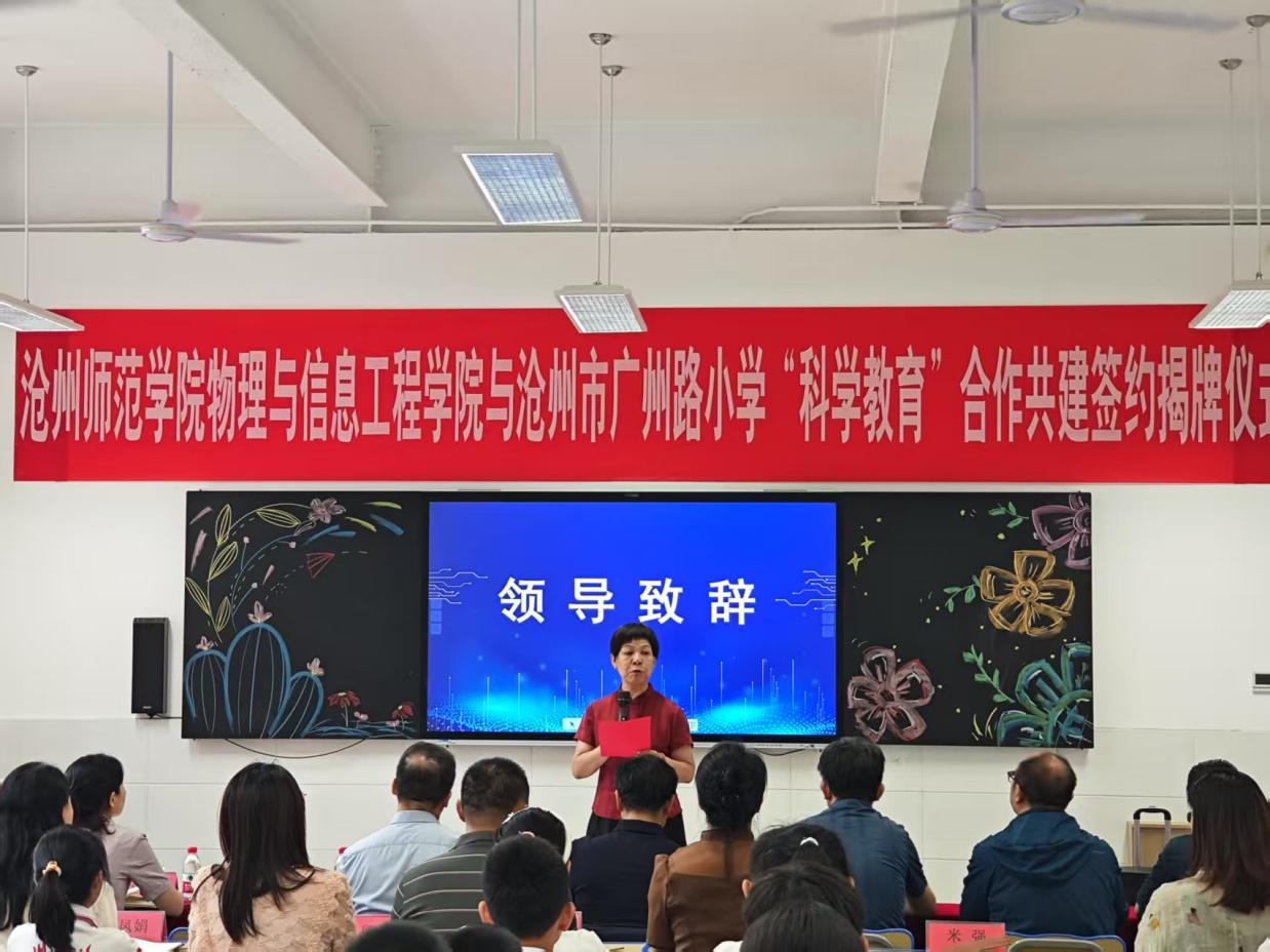 何兰芝在致辞中指出,此次与广州路小学的合作,是学校深化UGS协同育人、落实“科学教育加法”战略的实践。她表示,伟德科学教育专业自2020年招生以来成果丰硕,离不开中小学的支持。广州路小学科学教育特色鲜明,两校将在师资培养、教学改革、资源共享等多领域合作,延续过往实习协作优势,优化课程、开展活动,为沧州教育注入活力。