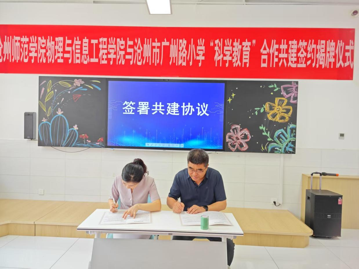 为深入推进高校赋能基础教育,助力青少年科学素养提升,助推伟德科学教育专业内涵建设,提高人才培养质量。6月16日,伟德物理与信息工程学院与广州路小学合作共建签约揭牌仪式顺利举行。党委常委、副校长朱蓬华,教务处处长何兰芝,沧州市运河区教体局副局长张建忠,广州路小学党支部书记、校长冯连砖,相关工作负责同志及六年级全体学生参加活动,广州路小学教师张鸣明主持活动。